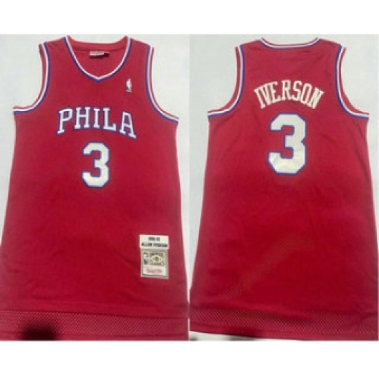 Men's Mitchell and Ness Philadelphia 76ers #3 Allen Iverson Authentic Red Throwback NBA Jersey