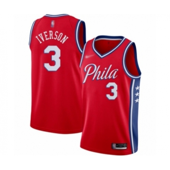 >Men's Philadelphia 76ers #3 Allen Iverson Authentic Red Finished Basketball Jersey - Statement Edition