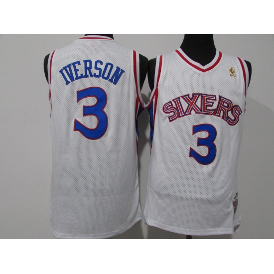 Men's Philadelphia 76ers #3 Allen Iverson Blue Throwback Basketbal Jersey