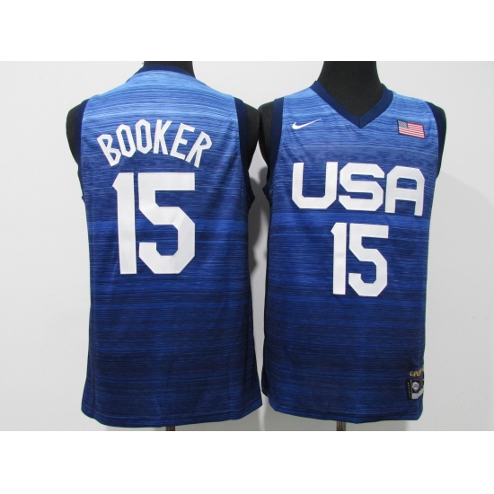 >Men's Phoenix Suns #15 Devin Booker Blue USA Basketball Tokyo Olympics 2021 Jersey