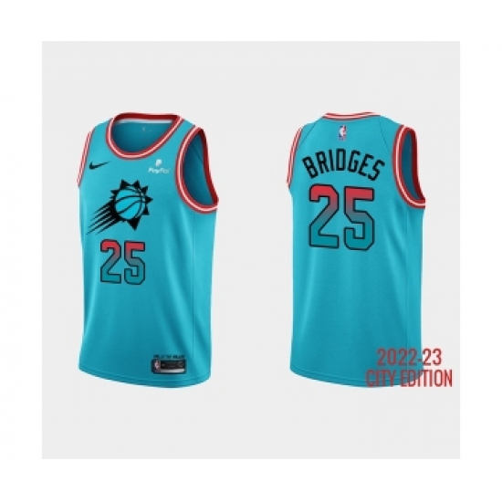 Men's Phoenix Suns #25 Mikal Bridges 2022-23 Blue City Edition Stitched Basketball Jersey