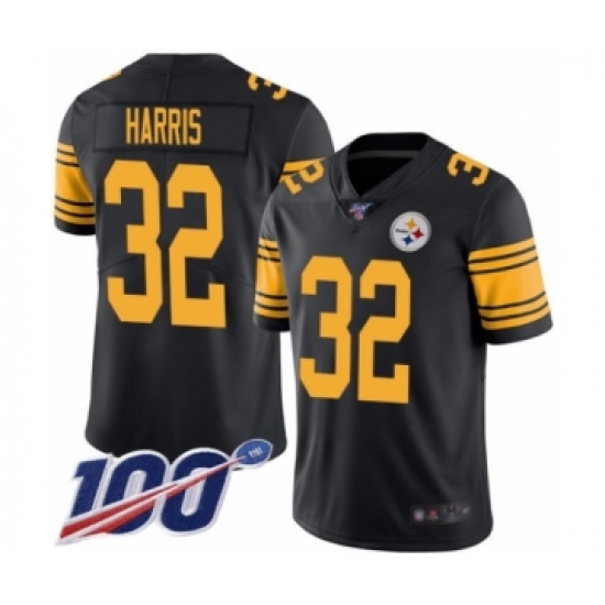 >Men's Pittsburgh Steelers #32 Franco Harris Limited Black Rush Vapor Untouchable 100th Season Football Jersey