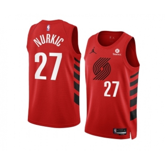 >Men's Portland Trail Blazers #27 Jusuf Nurkic 2022-23 Red Statement Edition Swingman Stitched Basketball Jersey