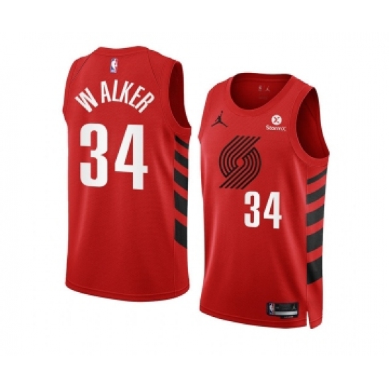 >Men's Portland Trail Blazers #34 Jabari Walker 2022-23 Red Statement Edition Swingman Stitched Basketball Jersey