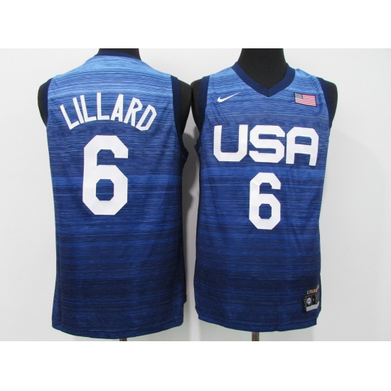 Men's Portland Trail Blazers #6 Damian Lillard Blue USA Basketball Tokyo Olympics 2021 Jersey