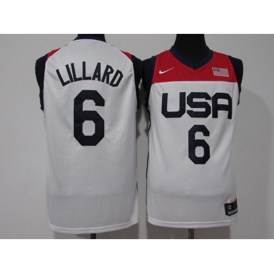 Men's Portland Trail Blazers #6 Damian Lillard White USA Basketball Tokyo Olympics 2021 Jersey