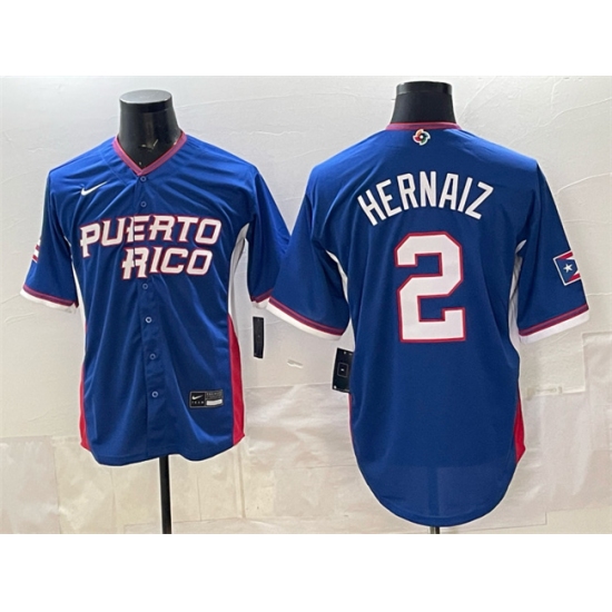 Men's Puerto Rico Baseball #2 Darell Hernaiz Royal 2026 World Baseball Classic Road Stadium Stitched Jersey