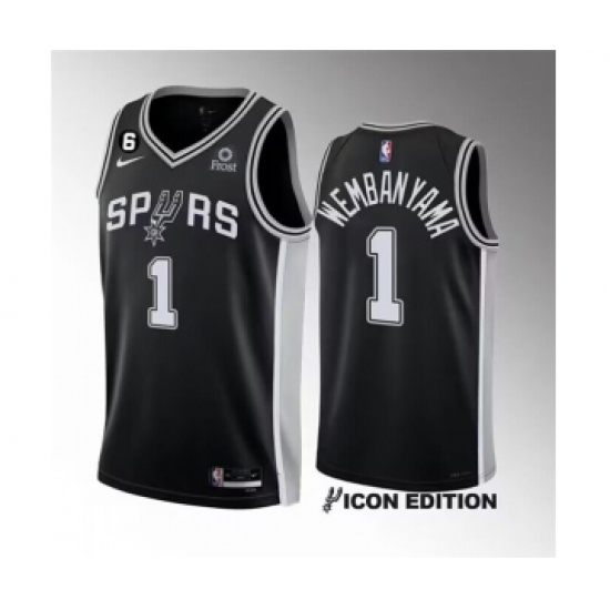 >Men's San Antonio Spurs #1 Victor Wembanyama Black 2022-23 Icon Edition With NO.6 Stitched Basketball Jersey