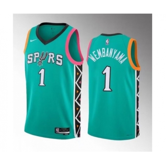 >Men's San Antonio Spurs #1 Victor Wembanyama Teal 2022-23 City Edition Swingman Stitched Basketball Jersey