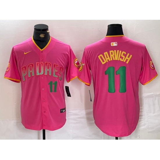 Men's San Diego Padres #11 Yu Darvish Pink Player Number Fashion Baseball Jersey