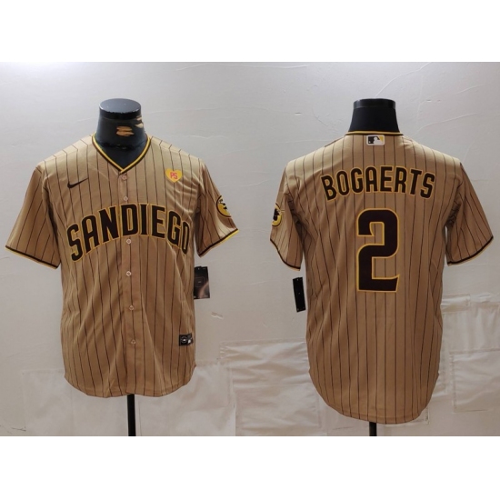 >Men's San Diego Padres #2 Xander Bogaerts Khaki With PS Cool Base Stitched Jersey