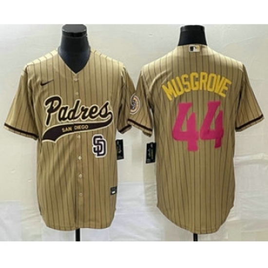>Men's San Diego Padres #44 Joe Musgrove Tan Pinstripe 2023 City Connect Cool Base Stitched Jersey