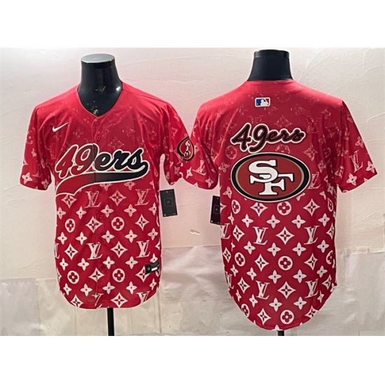 Men's San Francisco 49ers Red Team Big Logo With Patch Cool Base Stitched Baseball Jersey
