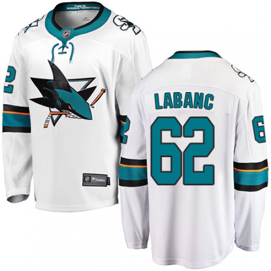 Home>NHL>San Jose Sharks>Kevin Labanc>Men's San Jose Sharks #62 Kevin Labanc Fanatics Branded White Away Breakaway NHL Jersey
