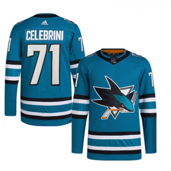 Men's San Jose Sharks #71 Macklin Celebrini Teal Adidas NHL Stitched Jersey