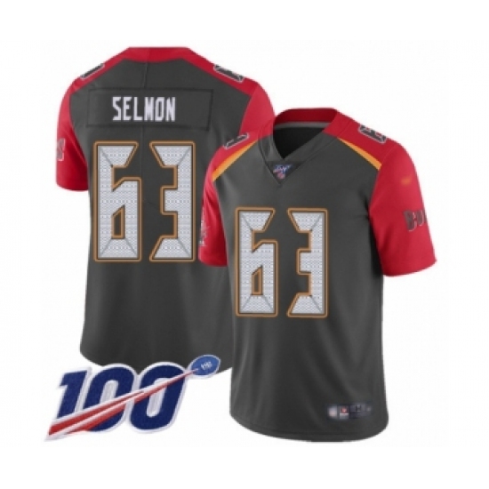>Men's Tampa Bay Buccaneers #63 Lee Roy Selmon Limited Gray Inverted Legend 100th Season Football Jersey
