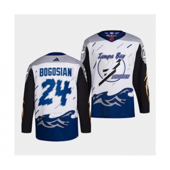 >Men's Tampa Bay Lightning #24 Zach Bogosian White 2022 Reverse Retro Stitched Jersey