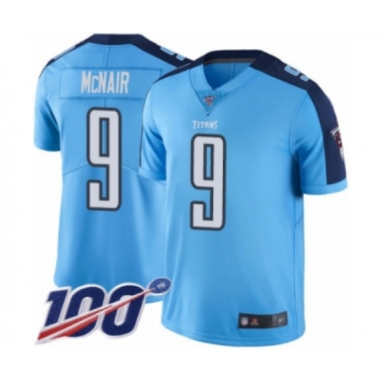 Men's Tennessee Titans #9 Steve McNair Limited Light Blue Rush Vapor Untouchable 100th Season Football Jersey