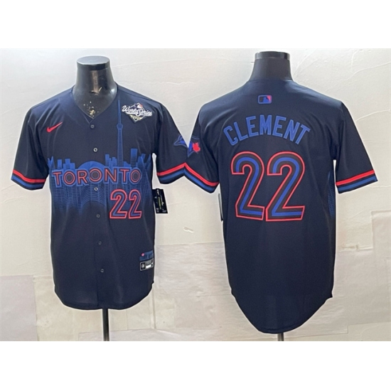 >Men's Toronto Blue Jays #22 Ernie Clement Navy 2025 World Series City Connect Limited Stitched Baseball Jersey