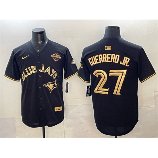 >Men's Toronto Blue Jays #27 Vladimir Guerrero Jr. Black Gold 2025 American League Champions Limited Stitched Baseball Jersey