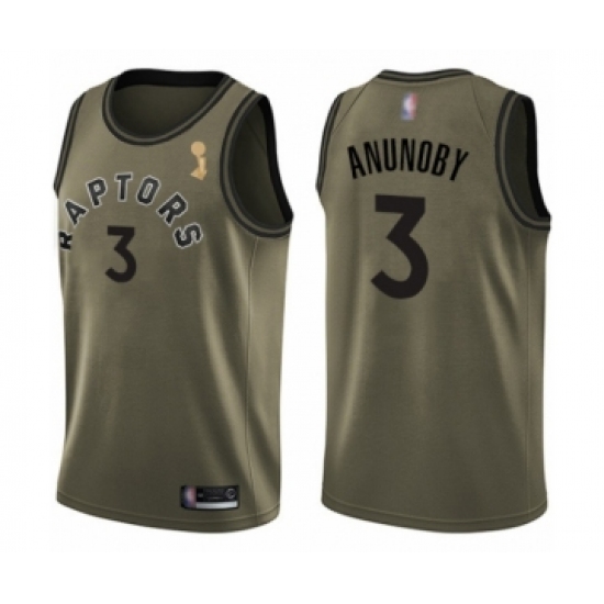 Men's Toronto Raptors #3 OG Anunoby Swingman Green Salute to Service 2019 Basketball Finals Champions Jersey