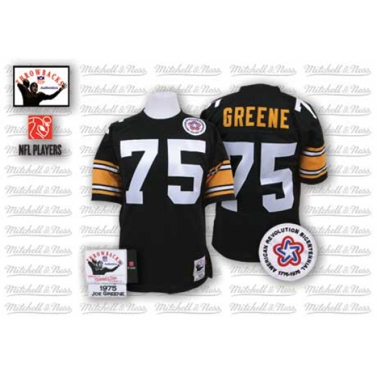 Feel like part of your favorite team by wearing this NFL® Mitchell And Ness Pittsburgh Steelers #75 Joe Greene Authentic Jersey Black Team Color Authentic Throwback NFL Jersey, made of thick, high-quality Pro-Brite fabric for a genuine gridiron look. The players number which 100% stitched is displayed in tackle twill on the chest, back and sleeves, along with the team name on the front. The players name which 100% stitched is displayed on a sewn-down nameplate at the back. 100% Pro-Brite nylon and 100% Pro-Brite polyester for body, 100% lycratalic spandex dazzle for Side Panels/Collar/Cuffs, NFL® Equipment patch sewn on the bottom of the front collar or fabric insert, NFL® Equipment jock tag with numeric sizing is applied to the lower left bottom of the jersey, Reebok® logo embroidered on each sleeve, Officially licensed.