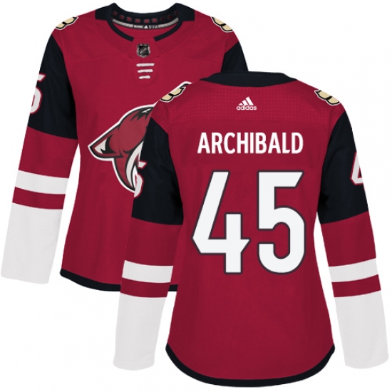 >Women's Adidas Arizona Coyotes #45 Josh Archibald Authentic Burgundy Red Home NHL Jersey