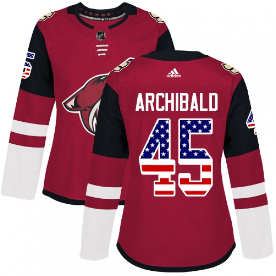 >Women's Adidas Arizona Coyotes #45 Josh Archibald Authentic Red USA Flag Fashion NHL Jersey