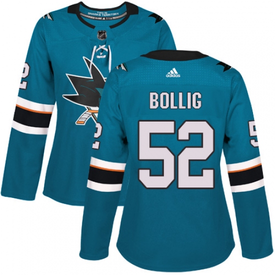 Home>NHL>San Jose Sharks>Brandon Bollig>Women's Adidas San Jose Sharks #52 Brandon Bollig Authentic Teal Green Home NHL Jersey