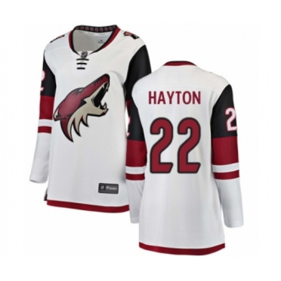 Women's Arizona Coyotes #22 Barrett Hayton Authentic White Away Fanatics Branded Breakaway NHL Jersey