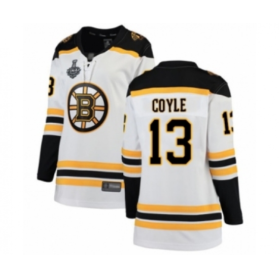 Women's Boston Bruins #13 Charlie Coyle Authentic White Away Fanatics Branded Breakaway 2019 Stanley Cup Final Bound Hockey Jersey