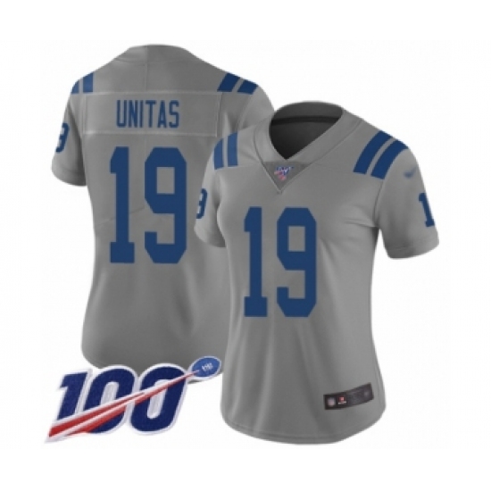 >Women's Indianapolis Colts #19 Johnny Unitas Limited Gray Inverted Legend 100th Season Football Jersey