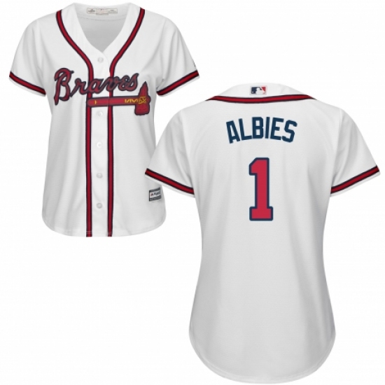 Women's Majestic Atlanta Braves #1 Ozzie Albies Replica White Home Cool Base MLB Jersey