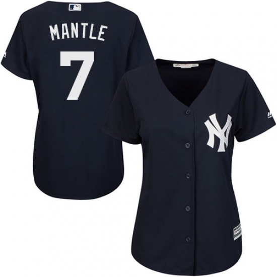 Women's Majestic New York Yankees #7 Mickey Mantle Authentic Navy Blue Alternate MLB Jersey