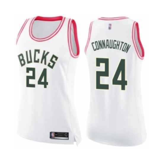 Women's Milwaukee Bucks #24 Pat Connaughton Swingman White Pink Fashion Basketball Jersey