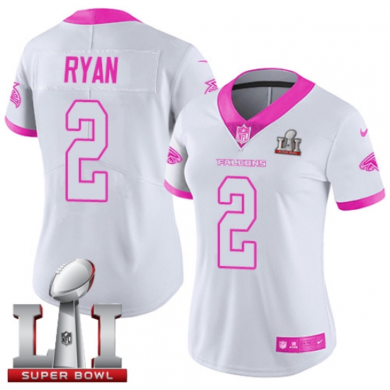 Home>NFL>Atlanta Falcons>Matt Ryan>Women's Nike Atlanta Falcons #2 Matt Ryan Limited White/Pink Rush Fashion Super Bowl LI 51 NFL Jersey