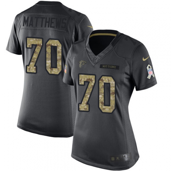 Home>NFL>Atlanta Falcons>Jake Matthews>Women's Nike Atlanta Falcons #70 Jake Matthews Limited Black 2016 Salute to Service NFL Jersey