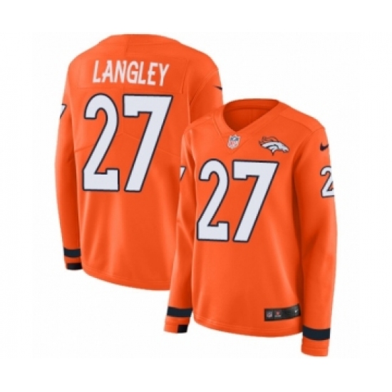 >Women's Nike Denver Broncos #27 Brendan Langley Limited Orange Therma Long Sleeve NFL Jersey