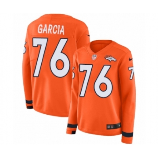Women's Nike Denver Broncos #76 Max Garcia Limited Orange Therma Long Sleeve NFL Jersey
