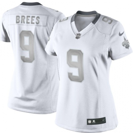 Women's Nike New Orleans Saints #9 Drew Brees Limited White Platinum NFL Jersey
