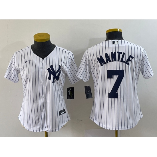 Women's Nike New York Yankees #7 Mickey Mantle White No Name Stitched Cool Base Jersey