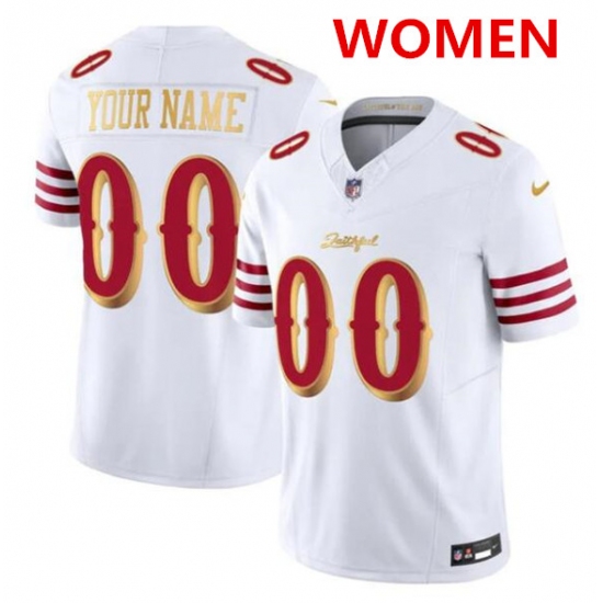 >Women's San Francisco 49ers ACTIVE PLAYER Custom White Gold 2025 F.U.S.E. “Rivalries” Vapor Limited Football Stitched Jersey(Run Small)