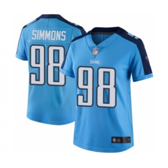 >Women's Tennessee Titans #98 Jeffery Simmons Limited Light Blue Rush Vapor Untouchable Football Jersey
