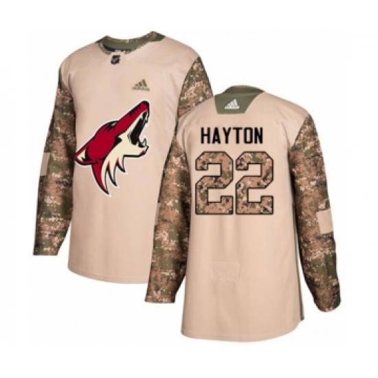 Youth Adidas Arizona Coyotes #22 Barrett Hayton Authentic Camo Veterans Day Practice NHL Jersey