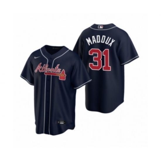 >Youth Atlanta Braves #31 Greg Maddux Nike Navy 2020 Replica Alternate Jersey