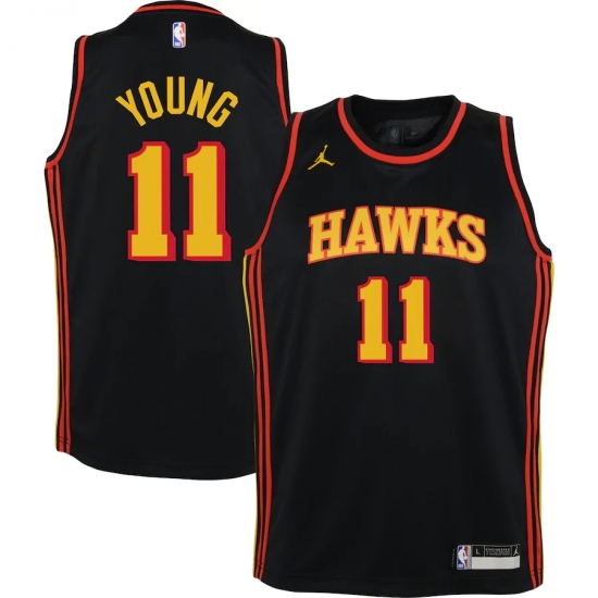 >Youth Atlanta Hawks #11 Trae Young Jordan Brand Black 2020-21 Swingman Player Jersey