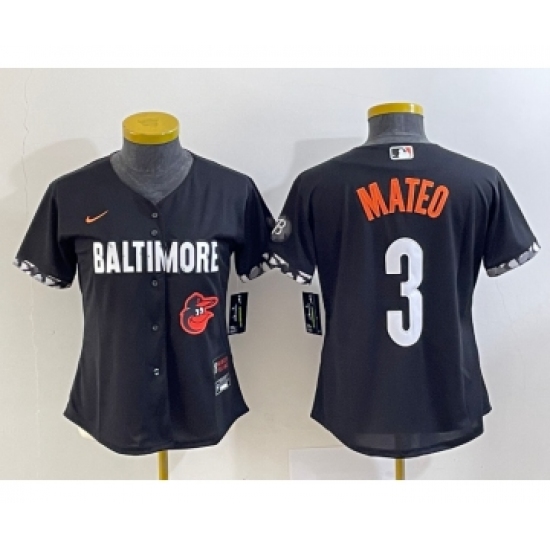 Men's Baltimore Orioles #3 Jorge Mateo Black 2023 City Connect Cool Base Stitched Jersey 1