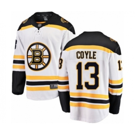 Youth Boston Bruins #13 Charlie Coyle Authentic White Away Fanatics Branded Breakaway Hockey Jersey