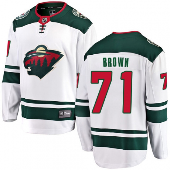 >Youth Minnesota Wild #71 J T Brown Authentic White Away Fanatics Branded Breakaway NHL Jersey