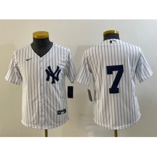 Youth New York Yankees #7 Mickey Mantle White No Name Stitched Nike Cool Base Throwback Jersey